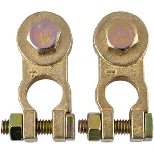Quantity: 1 Pair (1 x Positive, 1 x Negative). Material: Brass; Product Dimensions: 6.3 x 3.5 x 2.5cm; Item Weight: 220g. Voltage: 12V or 24V, Screw Thread: M10. These are universal battery terminals, suitable for batteries with a positive pole head diameter of 19mm, and a negative pole diameter of 17mm. Designed for both top post batteries and side post batteries with standard post adapters.