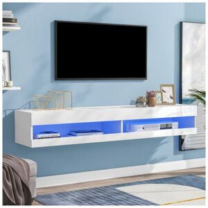 Modern TV Stand: 140cm W x 40cm D x 30.5cm H. Modern minimalist TV cabinet living room with a high-gloss finish and led lights tv cabinet. Generous, white gloss finish design takes extra energy and time in the manufacturing process, ensure the floating tv stand is superior and graceful. Shipping from the UK faster delivery! Space Saving & Large Capacity: The Wall-mounted TV stand is suitable for up to an 65-inch TV. The TV stand features large-capacity storage space. Plenty of storage space for your entertainment consoles, you can put game consoles, media players, and even books and magazines in the cabinet that can help you keep your home tidy and clean. 16 colors LED Lights: Entertainment center with 16 colors LED lights, ideal for home lovers. This LED lights system is controlled by remote control to switch ON/OFF, decorating your home colorful and beautiful. Sturdy and Solid Material: It uses high-density and environmentally friendly MDF and tempered glass, high-quality hardware,