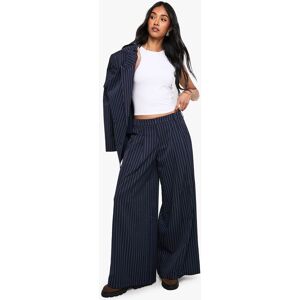 Tailored wide leg trousers featuring classic pinstripe pattern throughout High-rise waistband for a flattering silhouette Flowing wide leg cut creates dramatic movement with every step Soft woven fabric with slight stretch for all-day comfort Versatile design perfect for mixing with casual and smart pieces Make a striking statement with these pinstripe wide leg trousers from Boohoo. The tailored design offers a contemporary twist on traditional office attire, whilst the flowing wide leg silhouette creates a dramatic look that's both comfortable and chic. Style with a fitted white t-shirt for daytime casual sophistication, or pair with the matching blazer for a coordinated power suit moment. These trousers transition effortlessly from family gatherings to casual workplace settings when worn with flat shoes and minimal accessories. For evening outings, try pairing with a bodysuit and statement clutch. The high-rise waistband creates a flattering shape that works brilliantly with both tucked-in and cropped tops. These versatile trousers will quickly become a cornerstone of your wardrobe, offering endless styling possibilities throughout the seasons.