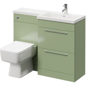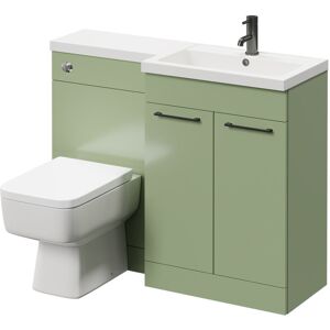 Model Number: WDB92683 Give your guests something to admire with the Napoli 390 Combination Olive Green 1100mm Vanity Unit Toilet Suite with Left Hand L Shaped 1 Tap Hole Basin and 2 Drawers with Matt Black Handles. Featuring a back to wall toilet unit, a matching vanity unit with 2 large drawers, a polymarble basin, and 2 sleek matt black handles. The vanity unit and toilet enclosure have a gorgeous olive green finish. Bringing a sense of calm to any room. The polished chrome dual flush button is embedded with water saving technology. Helping you support the planet and your home. Bask in peace and serenity with the Napoli 390 Combination Vanity Unit Toilet Suite. Transforming your bathroom from chaos to tranquillity. Order now and enjoy our free click and collect service! Key features Two spacious drawers with elegant handles Basin comes with one pre-drilled tap hole Stylish finish adds a touch of luxury Provides ample storage space for your bathroom essentials Slow-closing mechanism
