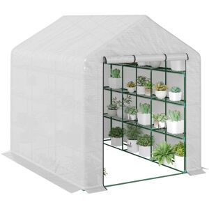 Ideal for any kind of gardener, this poly tunnel greenhouse from Outsunny is ideal for giving your plants, flowers and herbs a shelter all year round. Large sized to ensure plenty of room to store and organise your plants, it is made with a galvanised metal frame for support and durability, with a powder coat finish for protection against the elements outside. Made from tough plastic, the cover helps protect your plants from light rain and light wind, whilst allowing sunlight to glare through to give them all the natural nourishments to grow healthy and beautifully. OUTSUNNY Walk-In Polytunnel Greenhouse Garden Growhouse w/ Roll Up Door in White