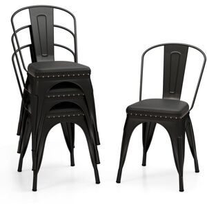 Are you looking for the perfect barstool that is both reliable and stylish? These bar stools feature heavy-duty metal construction for durability. In addition, the ergonomic chair provides optimal support for your body and relieves pressure. The high backrest and footrest provide a comfortable seating experience for you to relax. Notably, these stools have a removable backrest, allowing you to choose to sit with or without a backrest. When the backrest is removed, these stools can be stacked together to achieve the space-saving design. And the convenient handles allow you to move the stools easily. Versatility is key and our industrial bar stool set blends well with any decor. Whether for the kitchen, bar, dining room or living room, these stools are the perfect choice. Costway Set of 4 Stackable Dinning Chairs Industrial Metal Bar Stools in Bronze