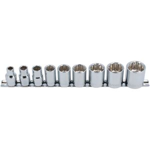 A set of standard 1/2""D Bi-Hex (12pt) Whitworth sockets from 1/8"" - 5/8"", manufactured from chrome vanadium with a polished chrome finish. Socket sizes: 1/8"", 3/16"", 1/4"", 5/16"", 3/8"", 7/16"", 1/2"", 9/16"" and 5/8"". Socket length: 40mm (9/16"" and 5/8"" are 43mm long). Whitworth sockets are popular for use on classic cars. Supplied on a socket rail.