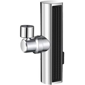【3-in-1 Water Outlet Faucet】: Offers multiple water flow modes, including waterfall, power, squeegee, and shower modes for versatile use. 【Premium Materials】: Made with solid brass connectors and arms, ABS aerator body, and multi-layer electroplated surface for durability. The four-layer anti-splash filter ensures hygienic rinsing. 【Easy Installation】: Comes with 2 connection sizes, suitable for kitchen faucets, sink faucets, bathroom faucets, and toilet faucets. Contributes to an efficient plumbing system. 【Waterfall Kitchen Faucet】: Unique waterfall water flow mode, perfect for washing dishes and food. The silicone nozzle repels limescale and improves durability. 【720° Swivel Filtered Faucet Aerator】: Seamless swivel aerator with sealed joints for protection. 360-degree rotation allows for sink cleaning and can function as an eyewash station.