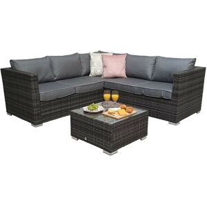 Signature Weave Grace corner sofa set in 3 weave grey with lift table & 2 ottomans High strength powder-coated aluminium frame UV treated wicker Care Instructions: Cushion covers are showerproof but need to be stood on their ends for water to drain away. All cushions should be stored away in a dry area when not in use. Cushion covers can be cleaned with soapy water and a damp cloth that is not abrasive. We do not advise to wash or tumble dry as this may effect the showerproof properties. Do not leave any glass items/objects on the table without mats/coasters. Do not store glass on its end during assembly; please place on a flat surface on carton provided. Cover glass in extreme heat as this can magnify the heat and melt wicker. Packaged in 3 cartons Delivery to the following postcodes are POA, please contact us before ordering - KW, IV16 and above, PA20 and above, PH30 and above. Delivery to BT, PO Isle Of Wight Postcodes & Offshore Islands is not possible