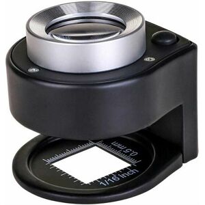 observation, and 3 UV lamp for money detector magnifier. These energy-efficient LED lights are designed to help you to read at night or dark places. 30X Magnification 25mm Dual-Lens: 25mm/0.98inch in diameter, this double-layer optical glass lens provides clearing imaging and good light transmission. 30X lens is perfect for miniatures, jewelry or professional inspection. Solid and Durable: Made of solid zinc alloy material with black paint finish. There are two precise scales: 1/16 inch and 0.5mm on base. You can measures the size of the object quickly. This microscope loupe is quite durable and not easy to damage. Hands-co.ukee and Easy to Operate: The focal length of this table magnifier is fixed and no need to adjust. Just place the loupe anywhere on the table, and place the object in the middle of the scale. White lights and UV lights are easily turned on/off by only one button. Mini and Lightweight: The very handheld size of 60*52/*51mm(/2.36*2.05*/2.01in), and only 190g (6.7oz),