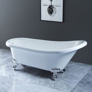 Traditional 1700 x 750mm Luxury Freestanding Slipper Bathtub Features and Benefits: Material: High quality acrylic reinforced with fibreglass and resin No pre-drilled tap holes- suitable for freestanding or wall mounted taps Double skinned roll top bath Comes with chrome aluminium legs CE Approved Colour: White Length: 1700mm Depth: 750mm Height at Highest End: 730mm Height at Lowest End: 625mm Water Capacity: 150 litres Includes: Bathtub 4 Legs Exposed waste and overflow Waste Pipe Important Details: We suggest you ask a qualified plumber to install this item. 10 years warranty. Taps are not supplied. The P&P is only for those addresses in Mainland England.A surcharge will apply to the remote areas .