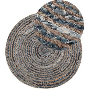 Flat Weave Jute Rug. Add a dash of rustic vibe by placing this adorable area rug in your room. Beautiful alternating cotton and jute braids create a very cosy look that resembles DIY items made from recycled apparel. Braiding and durable, natural materials guarantee longevity and a lasting great appearance. Details: Product Type: Low Pile Style: Boho General Color: Grey, Blue, Beige Material Type: Fabric Main Material: Jute Additional Material: Cotton Shape: Round Anti-Slip Bottom: No GSM: 2150 g/m2 Pattern: Patchwork Suitable for Underfloor Heating: Yes Weaving: Machine Woven Dimensions: Pile Height: 1 cm Width: 120 cm Length: 120 cm Weight: 3 kg Offer Includes: 1 x Rug Key Features: Suitable for Underfloor Heating, Classic Design, Blends Well with Any Decor, High-Quality Materials, Precise Finish Assembly Information: Does Not Require Assembly Additional Information: Please note that due to the fact that the rug is handwoven, each piece may slightly differ in terms of colour,