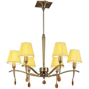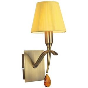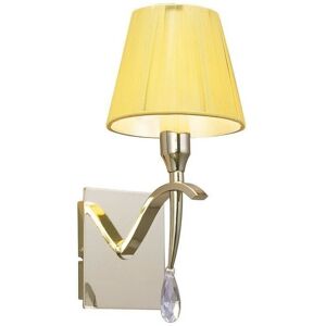 Specification Inspired Mantra - Siena PB - Wall Lamp Switched 2 Light E14, Polished Brass with Amber Cream Shades And Clear Crystal Finish: Polished Brass IP Rating: IP20 Height (cm): 34 Width (cm): 30 Projection (cm): 18 No. of Lights: 2 Lamp Type: E14 Switched: Yes - Rocker Switch Dimmable: Yes - Dimmable Bulbs Required Wattage (max): 40W Weight (kg): 1.2 Bulb Included: No Description This with Its slim and sinuous rectangular arms give a charm and simplicity that makes this elegant collection. The silk string shades create a screen that produces a diffused light, which work together with its complimenting crystal pendalogues and sphere, creating an intimate atmosphere. The silk string shades have a white inner lining which allows for maximum illumination and creates a contrasting conclusion. With three different frame and crystal finishes and eleven different colour options for the silk string shades, you really can create a tailored solution for your decor. This is the most