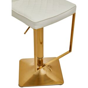 This bar stool features a leather effect padded seat with diamond pattern tufted back. Height adjustable with swivel action, the gold finish square base aligns with a minimal footrest and luxe sophistication. Borough Wharf Base Colour: Gold, Upholstery Colour: White