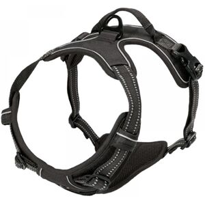Suitable for all dogs: This no-pull harness has four adjustment points and an elastic band on the belly for added flexibility. Size S is suitable for pets with a neck circumference of 32-49 cm and a chest circumference of 34-63 cm. Suitable for everyone: Made of soft and breathable material, allowing your dog to move freely in comfort. The handles are padded. SAFETY FIRST: The dog harness has multiple stitching and reflective strips all around to ensure your safety during walks or night runs. We also chose chew-resistant materials. Closure system: Thanks to the new shape of the closure buckle, it does not open under tension. The buckle can only be opened by applying pressure on both sides.