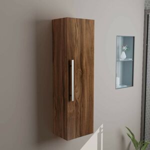 Walnut Wall Mounted Tall Bathroom Storage Unit The Walnut Wall Mounted Tall Bathroom Storage Unit adds accessible storage space to your bathroom and the neutral Walnut effect makes it suitable for any bathroom. Effortlessly hung, this tall unit adds balance to your suite and can be used in conjunction with furniture from the rest of the range. This tall storage unit is backed by our 10 year 'Fit and Forget' guarantee for greater peace of mind. Product Features & Benefits: Walnut finish - fully wrapped Pre-Assembled unit Contemporary rectangular design Wall mounted Includes 2 adjustable shelves Single door Soft closing door with chrome handle Large internal storage space Height: 1200mm Width: 350mm Projection: 250mm Important Details: Pre-assembled unit for your convenience 10 year 'Fit & Forget' guarantee The P&P is only for those addresses in Mainland England.A surcharge will apply to the remote areas .