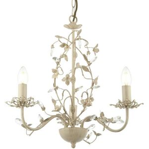Specification Endon Lullaby - 3 Light Multi Arm Ceiling Pendant Flower Design Cream Brushed Gold, Pearl Effect Acrylic, E14 Finish: Clear, Pearl Effect Acrylic, Cream With Brushed Gold Material: Steel, Acrylic IP Rating: IP20 Height (cm): 110 Diameter (cm): 37 No. of Lights: 3 Lamp Type: E14 Bulb: Candle Dimmable: Yes Description A 3 light chandelier with intricate flower detail and glass drops, finished in gold and cream with beading detail. This fitting has an adjustable drop and can also convert to a flush fitting, is dimmable and suitable for use with LED lamps. Other items available in this range