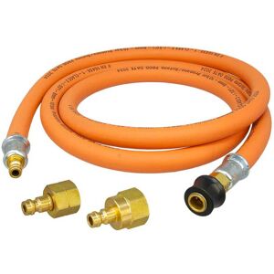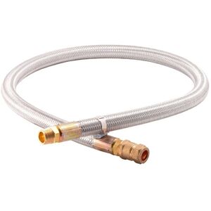 The Caravan LPG Hose Assembly Galvanised Steel, 1.5m - 3/8 Bsp MT x 15mm , meticulously crafted from galvanised steel to offer unparalleled durability and performance. This premium hose assembly spans 1.5 meters in length, featuring connections of 3/8 BSP Male Taper on one end and 15mm compression on the other, making it an ideal choice for a wide range of applications including cookers, heaters, and caravans. Designed to meet the rigorous standards of EN-16436-1 Class 2, our high-pressure hose assembly is engineered to handle the demands of your LPG (Liquefied Petroleum Gas) systems with ease. It boasts a robust working pressure of 10 bar, ensuring reliable operation under typical usage conditions, and an impressive burst pressure of 30 bar, offering peace of mind against the unexpected. Each hose assembly is reinforced with a steel overbraid, providing an extra lay