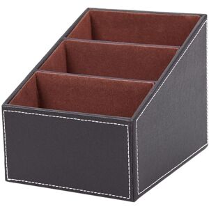 Sturdy and ;bringing both function and style to your living room! 3 different height sections for your cellphones, remote controls,pens and CD or other things of different size. interior and bottom are made of soft flannel,shortage the friction between and your items. Used as a desk-top organizer for office supplies, on a bathroom vanity for toiletries, in the kitchen, or anywhere you need a simple storage solution.bringing both function and style to your living room! it's so useful for your life! colour: brown Material: PU Size: 16*13*13cm Package include: 1 x Office desktop Storage Box Only the above package content, other products are not included. Note: Light and different displays may cause the color of the item in the picture a little different from the real thing. The measurement allowed error is +/- 1-3cm.