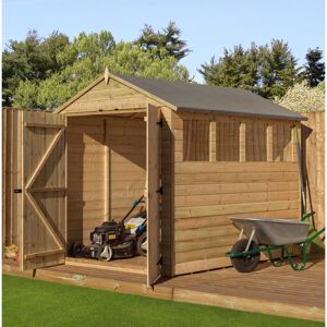 This standard apex shed has a classic design with an apex felted roof, making it suitable for any garden. Having no windows makes this extremely secure. The pressure-treated, tantalized, ship-lap T and G cladding provides excellent weatherproof joints and reduces the need for further treatment, making this shed easy to maintain. The braced door can be hung either left or right-handed to suit. The shed arrives in pre-assembled panels ready for construction. Empire Sheds Ltd