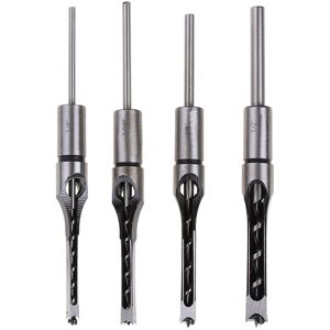 Material: High speed steel; durable and practical, heat treatment, long service life. 4 different sizes: 1/4" (6.35mm), 5/16" (7.94mm), 3/8" (9.5mm), 1/2" (12.7mm). Ideal for drilling square holes in wood with a mortising machine or mortiser. It is used in conjunction with the mortising machine. If you open the square hole manually, tools such as a hand drill and a hammer are required. Standard chip design, easy to remove the side of the wood chips, improve drilling efficiency. Reduce the labor intensity of construction workers, speed up the construction speed, reduce construction costs for construction, installation, renovation, decoration industries.