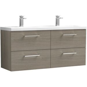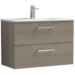 Model Number: ARN2526A The Nuie Arno Solace Oak Woodgrain 800mm Wall Hung 2 Drawer Vanity Unit and Mid Edge Ceramic Basin is the epitome of modern elegance, combining style with functionality. Perfect for both compact and spacious bathrooms, this vanity unit provides an exceptional storage solution while enhancing your space with its contemporary woodgrain finish. The soft-close mechanism on the two spacious drawers ensures a quiet and gentle closure, reducing wear and tear over time. Crafted from high-quality MDF, this unit is designed for durability and features a stunning solace oak colour that beautifully complements various bathroom styles. This vanity unit is paired with a sophisticated mid-edge ceramic basin that not only adds a touch of luxury but is also practical with its slotted waste and a single tap hole for easy installation of a mono basin mixer tap. The overall design is a harmonious blend of functionality and aesthetics, making it an ideal choice for homeowners,