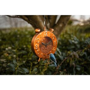 CLOCK BIRD FEEDER - Perfect for filling with an array of snacks and feed, this striking bird feeder in the shape of a half moon, is sure to help liven up any garden environment in style. Simply pop your bird seed and nuts in the opening at the side of our new moon shaped bird feeder and hang from a tree. Sit inside and watch your feathered friends have their fill! UNIQUE DESIGN - Decorate your outdoor space with this clock bird feeder. This novel bird feeder holds feed in a clock-shaped cage. Simply open the slot to the rear, add feed and any visiting birds will be able to perch with ease and enjoy a meal from the opening to the other side! This attractive and durable copper look metal hanging bird feeder is ideal for making food accessible to a wide variety of feeding birds in your garden whilst adding modern style at the same time. WEATHERPROOF - Easy-to-hang and ready-to-fill, this durable metal feeder is designed to help attract a wide range of wildlife, including wild birds to