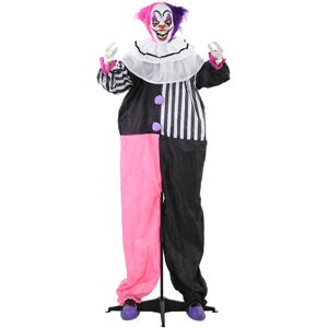 Unleash spine-chilling thrills with the HOMCOM Animated Halloween Prop, featuring a sinister laughing clown whose arms contort as you desire. Triggered by touch or piercing screams, this fiendish figure waves its hands, boasts eerie red glowing eyes, and cackles menacingly, making it a standout Halloween outdoor decoration for any haunted house or outdoor Halloween decor.- Laughing clown design with a bendable arm; - Activates automatically by touch or loud sounds; - Head turns and hands wave when activated; - Features ghastly red glowing eyes; - Creepy laughing sound enhances spooky atmosphere; - Battery-operated for easy indoor or outdoor placement; - Simple assembly required, sections fit together easily;- Colour: Black, White, Pink; - Light Colour: Red; - Material: Steel, Polyester, Plastic; - Overall Dimensions: 60L x 18W x 173Hcm; - Overall Height: 68"; - Power: 0.12W; - Battery: 3 x AA Battery (Not Included); - Item Label: 844-843V00BK; NOTE: Our product has a high sensibility. Suggest turning off the power when in noisy or windy surroundings!; The Seasonal Aisle