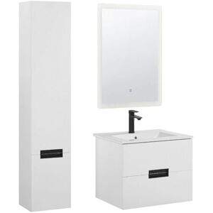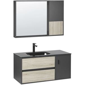 Wall Hung Vanity Set with Mirror. Make sure that your bathroom offers all the storage space you need, with this stylish vanity set. Including a basin cabinet with a basin and a mirrored wall cabinet, it will hold all your essentials out of sight. There are two deep drawers available as well two additional shelves next to the mirror. The set is perfect for a limited-space bathroom. Grey cabinets accented with fronts in wood-like finish work well with any décor style. Details: Product Type: Bathroom Cabinet Style: Modern General Color: Grey, Brown Material Type: Wood Main Material: MDF Additional Material: Ceramic Finish: Lacquered Dimensions: Mirror Dimensions: 40x70 Basin Dimensions: 44x28 Overall Dimensions: 60x48x70 Weight: 27 kg Weight Capacity: 100 kg Drawer Weight Capacity: 15 kg Offer Includes: 1 x Basin Cabinet, 1 x Wall Cabinet, 1 x Basin, Not Included: Taps Key Features: Additional Side Shelf For Accessories, Functional and Capacious Drawers, Soft-Close Drawer Runners, Modern