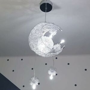 ❤ Beautiful LED Ceiling Pendant Light The moon and star fairy pendant light is so beautiful that when hung in your girl's or boy's bedroom, he must love it. And when you install this star chandelier in the dining room, create a peaceful and romantic atmosphere for your lover~ ❤Great gift for children The so beautiful hanging chandelier lamp is a perfect gift for children, have it by their bed at night and read before going to sleep. Any little girl/boy would love this string light for their bedroom, party or closet. Specifications: Type: Pendant Chandelier Material: Aluminum Wire br/> Color: Silver (aluminum) Light source: G4 LED Bulb quantity: G4 LED x 5pcs Power: 20W max Voltage: 110-240V Light color: Cool white light / Warm white light Shade diameter: 37cm Rope length: 100cm Base installation diameter: 10cm Applicable space: 8-15㎡ Delivery: 1 x LED pendant light (with 5 bulbs) Noticed: If you have not received the installation manual, please contact us and we will resolve the issue