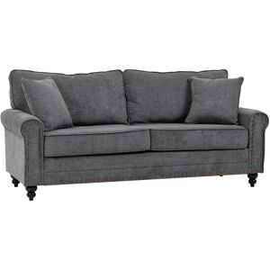 Sink into something comfortable without sacrificing your precious home space with this sofa couch from HOMCOM. The two-seater sofa design is great for compact spaces and yet spacious enough for relaxing with family and friends. Its soft polyester fabric, thick seat and back cushions offers exceptional sitting comfort. And its nailhead accent, rolled arms and turned legs evokes elegant charming. Enjoy a comfortable living room couch without giving up lots of space.Features:196cm x 80.5cm, spacious enough for 2 persons, yet great for limited spaces2 throw pillows, generously padded back and seat cushions deliver support and relaxationTurned legs, nail head trim and rolled arms adds a touch of high-end taste to your house4 rubberwood legs, giving it a robust and solid foundationFits in living room, college dorm, home office, or bedroomEquipped with black felt pads underneath to keep your floor look wellSimple assembly required