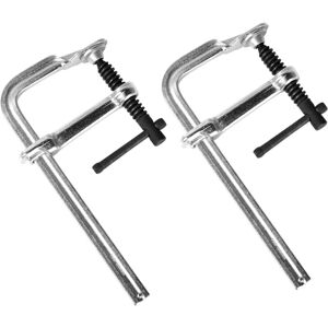 Product Dimensions: F-clamp openings up to 6 in/160 mm. Throat depth up to 80 mm. Flexible and compact, it is suitable for clamping most sizes of wood. GUARANTEE BALANCE: This woodworking clamp features alloy steel spacers and a removable head for opening the jaws. This reduces marks after clamping and prevents damage to the object. Dropped Forged Arm: This heavy-duty F-type clamp is made of drop-forged alloy steel. Black lead oxide screws and pins are rust-resistant and not easy to deform. Anti-slip buckle: The bottom of the guide bar is designed with an anti-slip buckle to prevent it from sliding too quickly or falling off. MULTIFUNCTIONAL: This wood clamp can be used for clamping, fixing, and fastening wood and steel. Widely used in furniture manufacturing, woodworking, welding, and other fields.