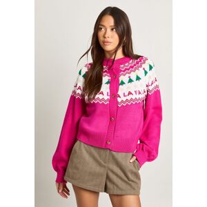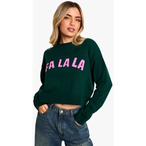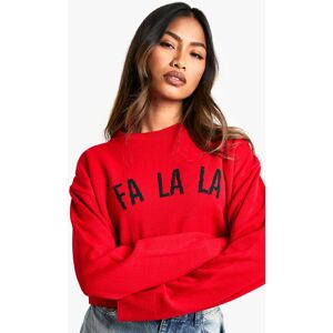 Festive 'FA LA LA' slogan design Cropped length for a modern silhouette Crew neckline for a classic look Long sleeves for warmth and comfort Ribbed cuffs and hem for a snug fit Embrace the holiday spirit with this charming 'FA LA LA' Christmas jumper from Boohoo. Perfect for those who want to showcase their festive cheer without compromising on style, this cropped design offers a contemporary twist on the traditional Christmas jumper. The bold slogan adds a playful touch, making it ideal for casual gatherings and family events. Style it with high-waisted jeans and trainers for a laid-back look, or pair it with a midi skirt and ankle boots for a more put-together ensemble. Layer it over a collared shirt for added warmth and dimension. This versatile piece can take you from a cosy night in to a festive pub outing with friends. The acrylic fabric ensures comfort and easy care, making it a practical choice for the busy holiday season. Whether you're decorating the tree or heading to a Christmas market, this jumper is sure to spread joy and keep you looking fashionable throughout the festivities.