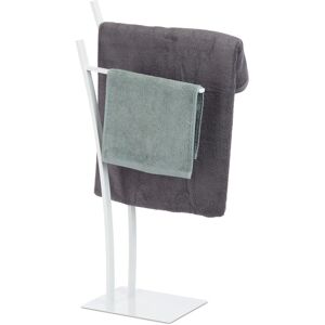 This double towel holder with an air of subtle elegance is a functional bathroom accessory and safely accommodates your cloths and towels. The rack impresses with a compact design that makes it suitable for even smaller bathrooms and more. This valet can be individually positioned anywhere you need it and does not need to be drilled to the floor. A heavy base ensures firm footing and features protectors to prevent scratches. White Towel Rack Details - Size: H x W x D: app. 88 x 43 x 24 cm - Rail height: app. 68.5 and 80 cm - Width of rails: app. 38 cm - Weight: app. 2.7 kg - Material: Steel - Colour: White Towel Stand for Bathrooms - For towels, beach towels and washcloths - With 2 staged rails for ideal air circulation - Freestanding and can be individually positioned - No drilling required - Sturdy and heavy base - With rubber floor protectors Included in Delivery - 1 x Towel Stand in Pieces - Assembly Instructions and Materials - Decorative items shown in product photos are not