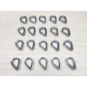 Specifications: Product Code: SFCOMT28 Product Weight: 1.42kg 28MM Hard Eye Thimbles Size - 28MM Quantity - 2 Material - Galvanised Steel Product Code A(MM) B(MM) C(MM) D(MM) E(MM) SFCOMT03 11 19.5 29 7.2 3 SFCOMT05 14 23 34.5 9.5 5 SFCOMT06 16 25 39 9.5 6.4 SFCOMT08 23 35 52 16 11 SFCOMT10 30 44 65 16 11 SFCOMT12 37 52 76 18 13 SFCOMT14 40.5 57 83 20 15 SFCOMT16 35 61 90.5 22.5 17.5 SFCOMT18 44 75 104 26 19 SFCOMT20 47 79 119 29 22 SFCOMT22 57 87 133 30 24 SFCOMT26 67 105 158 34 28 SFCOMT28 74 115 168 41 30 SFCOMT32 80 130 182 44 34 Wire rope thimbles are used for when a loop is made in wire rope and the loop needs to be strong to resist wear and tear and to add support. Galvanisation is the process of applying a protective zinc coating to steel or iron in order to prevent premature rust and corrosion. These particular thimbles are light duty for fencing and other applications. They are not suitable for lifting applications.