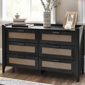 A beautifully sleek design with a bohemian feel, the Albelo 6-drawer wide chest offers exquisitely curved edging accompanied by a raised lip around the edge providing a practical addition, stunningly combined with a rattan-effect sticker front. Finished with a natural oak effect featuring six wide drawers providing the ideal storage space for any bedding or clothing items plus extra space on top for ornaments to be placed. Creating the perfect airy, warm feel within your home. 17 Stories Colour: Brown