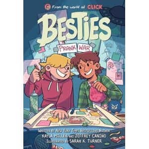 From the New York Times bestselling World of Click by Kayla Miller comes a graphic novel about besties Trent and Sawyer.When they accidentally start a classwide prank war, the boys need to get especially crafty if they’re going to come out on top—with all of their friendships intact. Trent and Sawyer make their Besties series debut with a bang and a crash!These two friends never back down from a challenge, whether it presents itself at the skate park or in the school hallway, but will that determination get them in over their heads?Between helping with their friend Tyler’s RPG campaign, catching streams of pro skateboarder Trixie Sampson’s new video series, and—oh yeah—homework, Trent and Sawyer are more than a little busy…but when Trixie announces a competition that might result in the boys getting to meet her and her crew, how could they resist entering?!The duo become single-minded in their quest to be the lucky “Trixsters” to win the prize, but it’s not easy pulling off the perfect prank and capturing it on video.With their friends growing resentful of being unwilling targets and after drawing the ire of the class prank queen, Nat, the buddies soon find themselves losing at their own game.As an all-out prank war spins out of control, Trent and Sawyer realize they might have pranked themselves by starting it.New York Times bestselling author Kayla Miller, coauthor Jeffrey Canino, and illustrator Sarah Turner, with her playful and expressive art style, deliver another vibrant and unique portrayal of middle school friendship in this latest title in the Besties series. Read more about Olive & friends in the World of Click books!Click Graphic Novels:Click ActCampClashCrunchBreak StuckBesties Graphic Novels:Besties: Work It OutBesties: Find Their GrooveBesties: Prank War