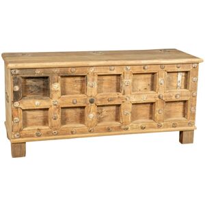 Wooden chest carved in the front, finely worked with floral decorations that blend with the color of the wood of dimensions length 140 cm, depth 62 cm, height 49 cm. This original wooden trunk-container has a lid embellished with a pickled finish in pastel shades of water green. Elegant, compact, solid and functional, the result is a piece of furniture with an elegant aesthetic and retro flavor that lends itself to embellish even the most modern space of your home. This original wooden trunk-container embellished with floral motifs was made with a finish with an antique effect. Historically, the chest is an elegant piece of furniture but also practical and versatile, where beauty is combined with the functionality of offering a unique and precious space to tidy up any room in the house. All measurements refer to the maximum size of the article