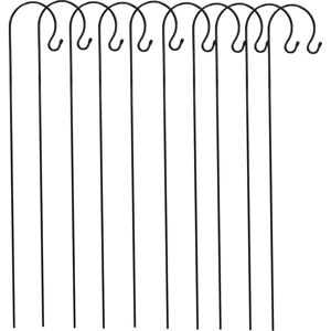 These border hooks are ideal for hanging a variety of garden accessories and positioning them around the garden – anywhere you can push the pole into the ground, you can have a border hook. They can be positioned in flowerbeds, lawns, amongst trees, shrubs and meadows; anywhere the ground is soft. The hooks can be used to hang a variety of bird feeders, create garden ambiance and mood with lights such as candle lanterns or solar lights. A popular use of these hooks is to place them in a line to direct wedding or party guests from a car park to the marquee. The hooks and poles are made from durable powder coated steel which makes them weather resistant, and the end of the hooks have a protective rubber stopper to ensure they are safe around children The hooks are 100cm high with 0.6cm pole diameter, the hook is 10cm with a 3.5cm smaller hook the end. * Perfect for candle lanterns or bird feeders * High quality and versatile * 1m high * Set of 10