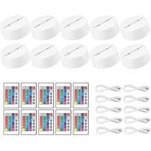 Each light base has 10 LED beads, works with a acrylic pattern plate for showing colorful light Come with IR remotes, which allows for convenient operation about dimming and ON/OFF 16 static color light and 4 lighting modes to choose such as flash, strobe, fade, smooth The LED base operated by 3 x AAA batteries(not include) or USB Charger Cable, which can be replaced easily Lights base worked perfectly for your projects, display your DIY acrylic plate Specification: Power: 3W Input Voltage: DC5V Dimensions: 87 x 87 x 40mm Slot size: 72 x 4.6mm Colour:White Material:ABS Package Contents: 10 * Lamp Base. 10 * USB Cable. 10 * Remote control Only the above package content, other products are not included. Note: Light reflection and different displays may cause the color of the item in the picture a little different from the real thing. The measurement allowed error is +/- 1-3cm.