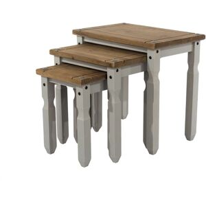 Material: Grey Washed Pine Finish: Grey Washed Wax Dimensions: W 530mm x D 350mm x H 511mm Assembled: Delivered Flat Packed for Self-Assembly . nest of tables - The Corona Grey Washed Nest Of Tables is a beautiful, rustic set of tables that is manufactured from Solid Pine in a grey wash effect and also completed with a beautiful grey washed wax finish. This Nest Of Tables offers a medium storage solution for your home and is manufactured to suit any setting whilst combining strength with reliability. The Corona Grey Washed Pine range from Core Products borrows popular features from a number of other alternative furniture ranges, owing to it's popular styling and strong manufacturing techniques. This collection is designed with a Grey Washed Waxed finish, which will add a modern quality to your home whilst ensuring a reliable and sturdy furniture solution. The Corona grey washed pine range is manufactured from South American Pine in a washed effect and it is delivered flat packed, with