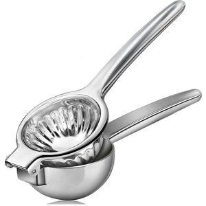 [GET LAST DROP FROM YOUR FRUIT] - Evenly distributed threads and 13 small unique juice holes prevent splashing of the juice and effectively filter out the core and increase the amount of fruit juice. [SO EASY TO USE LEMON SQUEEZER] - Put the lemon into the solid metal squeezer bowl, squeeze the handle hard to get a nutritious and healthy freshly squeezed juice. Don't need to deal with hassle of peeling and clear seeds. Whether you're making your favorite recipe, cocktail, margaritas or something else that requires a lot of lemon juice, you can do it all in seconds. [NO RUST & NO DEFORM] - The premium metal lemon squeezer is made of ultra-strong high-quality stainless steel with a food-grade silicone handle. But the lemon press/ press still not corrode, rust or bend because of the acidity of citrus juice. [EFFORTLESS & GREAT GRIP] - The food grade ergonomic silicone handle is very suitable for people hand less strength. This manual juicer press have comfortable grip, suitable for