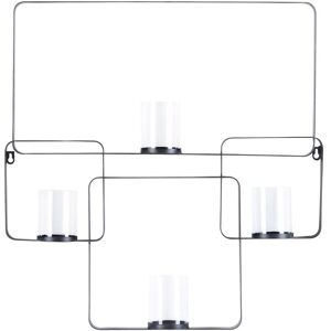 Modern Wall Hanging Candle Holder. This wall mounted candleholder is a mix of modern and industrial style that will be a perfect addition to any interior. The metal black framework comes together with glass holders that fit up to 4 candles or tea lights. When lit up, the candleholder will become a centrepiece of your interior, giving out a warm glow and cosy atmosphere. Details: Product Type: Candle Holder Style: Modern General Color: Black Material Type: Metal Main Material: Iron Additional Material: Glass Finish: Matt Handmade: No Dimensions: Depth: 8 cm Width: 64 cm Height: 65 cm Weight: 2 kg Offer Includes: 1 x Candle Holder Key Features: Perfect for Both a Bedroom and a Living Room, Modern Design, High-Quality Materials, For Indoor Use Only, Lightweight and Easy to Move Assembly Information: Does Not Require Assembly Maintenance tips: Metal: 1.Clean with a mild cleaner and soft cloth, wipe dry afterwards 2.To avoid scratches do not use abrasive cleaners 3.For copper or chromed