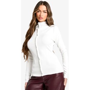 Boohoo Womens Exposed Seam Long Sleeve Rib Top - White - Size 8 Uk