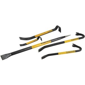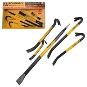 The 'Roughneck' 5 piece Multi -purpose bar set consists of one each of thefollowing: -12 inch x 1/2 inch hex Traditional Wrecking Bar...Suitable for pulling largenails, wrecking and dismantling.18 inch x 5/8 inch hex Traditional WreckingBar...Suitable for pulling large nails, wrecking and dismantling.7 inchUtility Bar...Suitable for pulling nails, wrecking, dismantling andprying.15 inch Utility Bar...Suitable for pulling large nails, wrecking,dismantling and prying.24 inch x 3/4 inch Aligning Bar...Suitable for Pryingand Aligning bolt holes and connecting hardware.