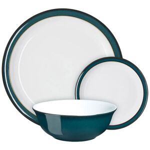 Denby presents their 12-piece set of dinnerware from the Greenwich range. Each item in this collection is beautifully handcrafted using high-quality locally sourced clay with the aim of being eye-catching and practical. Featuring a crisp white interior, gold detailing and an eye-catching emerald-green exterior, a really sophisticated statement piece at the dining table. A wonderful gift or a treat for yourself. Product Features Emerald green exterior with gold detailing and white interior Made by Denby in England Handcrafted using high-quality locally sourced clay for superb durability Glazed with a durable glaze to enhance longevity and resist chips and stains Other items are also available in this range Oven, microwave, dishwasher and freezer safe Presented in a gift box 10-year guarantee Items Included 4x 26.5cm Dinner Plate 4x 17.5cm Side Plate 4x 16.5cm Bowl