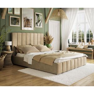 This bed is the right piece of furniture for anyone who dreams of a cozy bedroom where relaxation becomes the greatest pleasure. A high, shapely headrest is a decorative accessory that has a positive effect on the aesthetics of the interior. The character of the furniture is also emphasized by the front of the bed, which is harmonious with the headboard and forms a common whole. A wide range of materials allows you to choose the color and pattern according to your ideas. A beautiful headrest, which is covered with soft foam and a delicate velour fabric, provides an incredibly comfortable backrest while you read your favorite book or watch a film screening. Canora Grey Colour: Beige, Size: 160 x 200cm