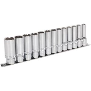 Manufactured from hardened and tempered high grade Chrome Vanadium 6142 steel. Fully polished mirror finish for corrosion resistance. Features specially machined flutes in the walls of the socket which enable use on up to 85% rounded fasteners. This not only provides added strength but also prevents damage to worn or rusted fixings. Includes knurled ring for extra grip with oily fingers. Supplied on socket rail. One of a comprehensive range of Premier Hand Tools, suitable for daily professional use. Manufactured from hardened and tempered high grade Chrome Vanadium 6142 steel. Fully polished mirror finish for corrosion resistance. Features specially machined flutes in the walls of the socket which enable use on up to 85% rounded fasteners. This not only provides added strength but also prevents damage to worn or rusted fixings. Contents: 10, 11, 12, 13, 14, 15, 16, 17, 18, 19, 21, 22, 24mm. Includes knurled ring for extra grip with oily fingers. Supplied on socket rail. Lifetime