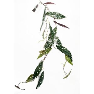 Realistic trailing plants in the style of Begonia Maculata with beautiful spotted leaves. These can also be combined with other plants for a larger display. No planter is included with this plant. Overall this measures 110cm x 30cm x 20cm as arranged in our photos.