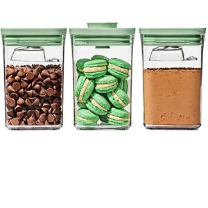 The OXO Good Grips Limited Edition Pistachio POP 3 Piece Container Set with Mini Scoops offers a stylish way to store your foods, from biscuits to lentils to coffee. With a pop top that creates an airtight seal, it will keep your food fresh and trapped from air. With two mini scoops, they make the perfect set for sitting on a countertop, owing to their sleek style and pop of modern green on the lid. Dishwasher safe and BPA free, they are easy to clean. Dimensions of each container: 16 (H) x 10.9 (W) x 10.9 (D) cm. Capacity: 1L.