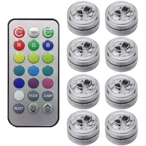 Super bright RGB 3030SMD LED lamp, span. The lights case made of high quality PVC, and wear-resistant, not easy to be broken. IP67 waterproof design, can use as vase, bowls, aquarium and party decoration light. Comes with remote control, transmit distance up to 10m. Powered by 2 x CR2032 batteries (Included), can work up to 12 hours. After you test these lights, you should take out the battery or put on (a small white flakes), otherwise the battery still slowly consumed. Colour:As Shown Material:plastic Name: Colorful Adhesive Ambient Light LED Chips: 3030 Remote Operate Distance: 10m Battery: 2 x CR2032 ( Included) Light Dimension: 30 x 22mm/1.18x0.8inch (D*H) Power Supply Mode: Button Battery Waterproof: IP67 Waterproof Installation Method: Non-marking Glue Paste Application: Universal Due to different batches, there may be differences in product appearance and printed text, which not affect use Package Contents: 8 x led lights 1 x Remote Control Only the above package content,