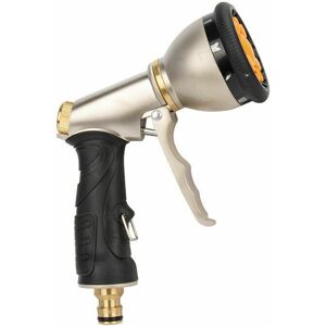 【9 Spray Patterns】Meet all your needs. 9 modes to choose from: jet, full, soaker, mist, flat, center, rinse, cone and shower spay pattern. The adjustable settings ensure a variety of water pressures from patio cleaning to misting delicate flowers around the garden. NOTE: When switching modes, release the key and rotate to position and align with the logo for prevent leaking. 【Multifunctions】In addition to professional car/motorcycle washing, garden/lawn watering; it can also be used to wash bathroom, kitchen, balcony, hallway, carpet, etc. NOTE: If in a certain mode, the water flow of the nozzle is very weak. That means the water pressure is too low, please increase the water pressure 【Premium Material】Our garden sprayer is made of 100% metal housing with rubberised outer coating, easy to grip, non-slip and comfortable. This spray gun also has a high quality anodized finish to prevent rust, corrosion and wear. The brass fittings ensure a durable high water pressure and prevent