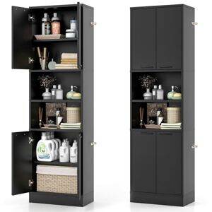 This kitchen pantry cabinet offers you abundant storage space without taking up too much floor space. It has 2 double-door cabinets with shelves and 2 open shelves to meet your storage needs. It not only serves as a buffet cabinet, but also works well as a cupboard, coffee bar, display cabinet, or bathroom cabinet. Besides, 4 doors help to prevent items from falling and keep interior items clean. There are easy-to-grip handles and metal hinges for effortless opening and closing. Robust base and non-slip foot pads make it steady enough. Furthermore, with the anti-toppling system, you can firmly fix the cabinet to the wall. Offer Diverse Storage Options: Featuring 2 double-door cabinets and 2 outer open shelves, the kitchen pantry cabinet offers ample storage space for your dinnerware, dishes, or other kitchen essentials. It will keep your items neatly organized. Reliable and Sturdy Construction: The solid base keeps this cupboard stable and not easy to wobble. Non-slip foot pads bring
