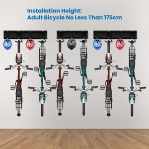 Maximize Your Garage Space with the Good Amount Bike Hanger Our wall mount bike racks are the perfect space-saving solution for you. Available in 4 Bicycles + 3 Helmets and 6 Bicycles + 4 Helmets, choose the one that fits your needs best. The bike wall hanger is designed with a fixed heavy-duty hook and a thick base, it securely holds your bikes vertically, maximizing your garage room and keeping your bicycles neatly organized. With a maximum weight capacity of 55 lbs, each bike hanger is sturdy and durable. Whether you need to store a single bike or several, our bike hanger for the garage has got you covered. Installation Notes: 1. Cannot be installed on gypsum board. 2. Reference installation height: Bicycle: not less than 175cm, children's bicycle can be lower. 3. When installing the wall mounts side by side, it is recommended to leave some space. Or staggered installation. 4. Screw model ST5.5. You can use: 8mm drill bit, impact drill, cross bit for installation 5. Optimize your